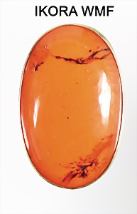 Kleider-Clip 1950/60er Jahre, "WMF-IKORA", Metall: vergoldet, orangefarbener Glascabochon, ca. 47 x 29,2 mm
