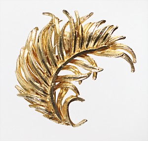 Brosche "BLATT", goldfarben, unsigniert, plastisch ausgearbeitet, ca. 54,5 x 55,5 mm