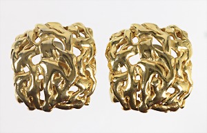 Ohrclips "SCHLEIFE", goldfarben, von "CINER" USA, signiert: CINER, weiches Viereck mit strukturierte Oberfläche, durchbrochen gearbeitet, ca. 34,5 x 32,5 mm