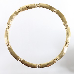 Halsnahes Collier im "Bambus-Design", goldfarben, unsigniert, Massive, schwere Ausführung, matt-strukturierte Oberfläche, untergebautes Kastenschloss, B = 10,5 mm, L = ca. 40,0 cm