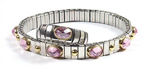 Lot: "NOMINATION", 1 Armband, umlaufend lila Stein (facettiert) u. kl. Goldfarbene Punkte, D = ca. 55 mm; 1 passender Ring, RW ca. 52