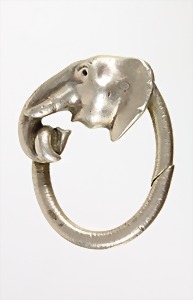 Schlüsselring "ELEFANT", Silber 925/000, sig.: M, plastisch schön ausgearbeiteter Elefantenkopf, ca. 44,0 x 35,5 mm
