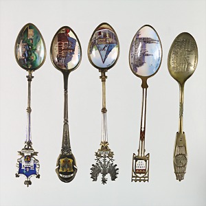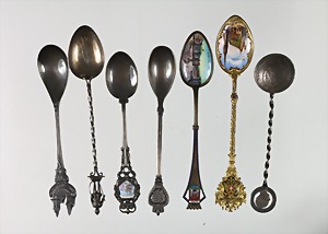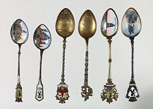 Lot: 7 Löffel, teilweise aufwändig emailliert, 3 x Silber 800/000, 1 X Innsbruck, 1 x Linz, 1 x Münzlöffel /Wilhelmina); 1 x Zugspitze (vers.); 1 x Wien (Stefansdom), Metall, verg.; u. 2 Löffel versilbert, L = 11,0 - 13,5 cm