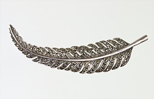 Brosche "FEDER",1930/40er Jahre, Silber 925/000, Markasiten, L = 79,5 mm