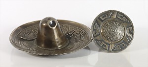 Lot: Silberschmuck "MEXICO" , Silber 925/000, 1 Brosche/Anhänger D = 45,2 mm; 1 Sombrero D = 89,2 mm