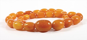 Bernsteinkette "BUTTERSCOTCH", Metallschließe, Olivenform D = 8,0-16,3 mm, L = 60 cm, vordere Olive ca. 22,0 x 16,3 mm, total 32,3 g