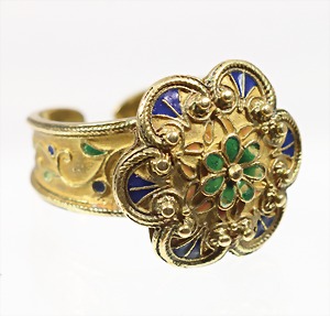 Ring Mitte 20.Jhd. wohl Persien ?,GG 750/00 (geprüft, eher mehr), Emailleeinlage, RW ca. 55,5 (Ring unten offen), schwer gearbeitet ! total 7,9 g